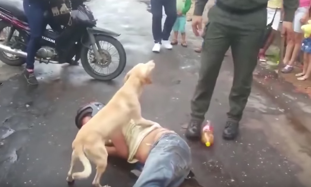 Cet homme a beaucoup trop forcé sur l'alcool et s'est retrouvé allongé ivre-mort au milieu de la route mais heureusement pour lui, son fidèle chien est là pour le protéger.