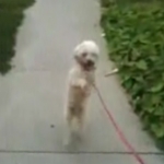 Un chien qui fait sa promenade debout