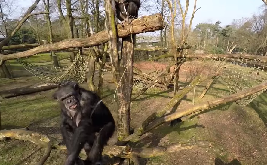 Les drones commencent à gonfler pas mal de monde et visiblement les chimpanzés ne font pas exception.