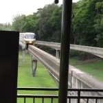 Dans ce qui ressemble à un parc d'attraction, un écureuil va faire galérer les visiteurs encore plus longtemps en se lavant les pieds sur les rails d'un train.