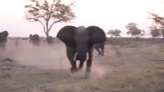 Un guide touristique fait marche arrière face à des éléphants en colère