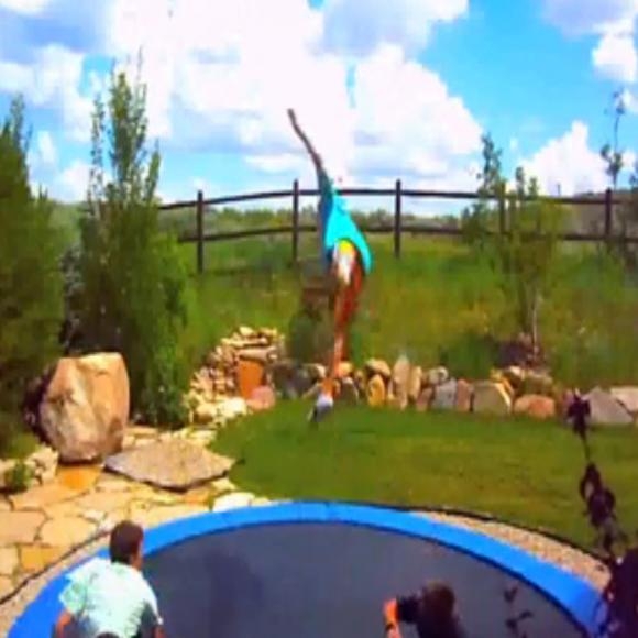 Devant une colline Windows (chacun ses références...), trois jeunes sur un trampoline vont nous offrir un FAIL tout aussi ridicule que douloureux.