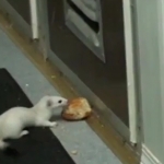 Grosse soirée pour ce furet voleur, celui-ci va mettre une plombe à voler un morceau de pain par une chatière, le tout devant les caméras de surveillance... T'es foutu mec ça t'apprendra à avoir les yeux plus gros que le ventre.