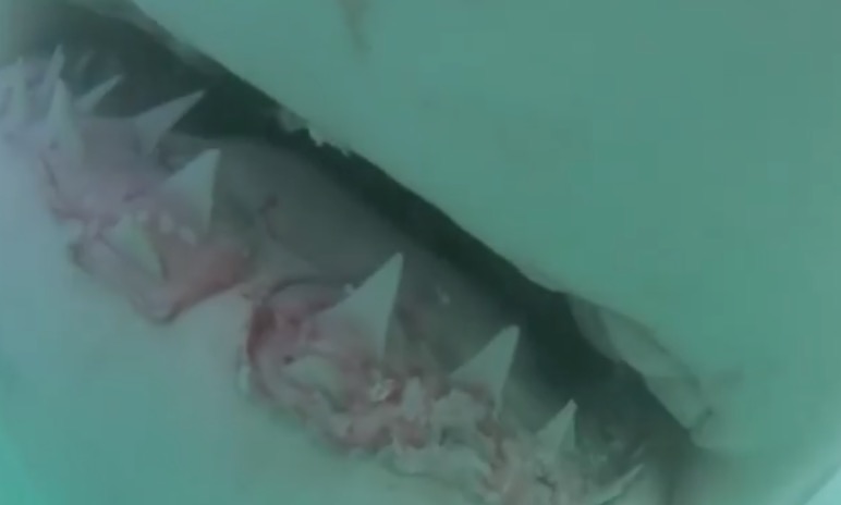 Lors d'une séance de plongée un homme a vu un grand requin blanc foncer directement sur sa caméra. La légende raconte que son maillot de bain est encore sale.