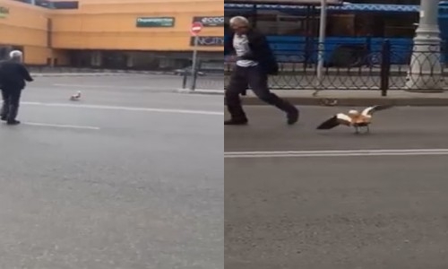 En Russie un chauffeur de taxi veut aider une famille de canards à traverser la route mais comme vous allez le voir, la maman n'aime pas qu'on lui fasse la leçon.