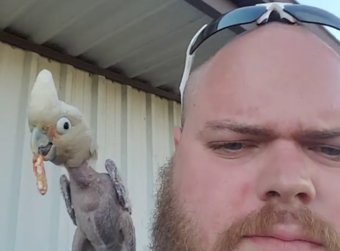 Pendant des années ce perroquet était mal nourri et mal traité, depuis quelques semaines il a été récupéré par cet américain au look très.... Américain et comme vous pouvez le voir, ils sont déjà devenus les meilleurs amis du monde. Pour les plumes ça va repousser.