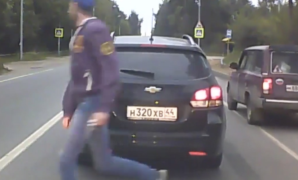 Un automobiliste s’arrête pour corriger des piétons qui traversent n’importe où (Russie)