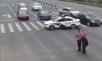 Un policier arrête la circulation pour aider un vieil homme à traverser (Chine)