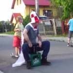 Après un bon match de foot, pour célébrer la victoire rien de mieux qu'une petite balade sur un scooter qui tourne avec les bières de la maison.
