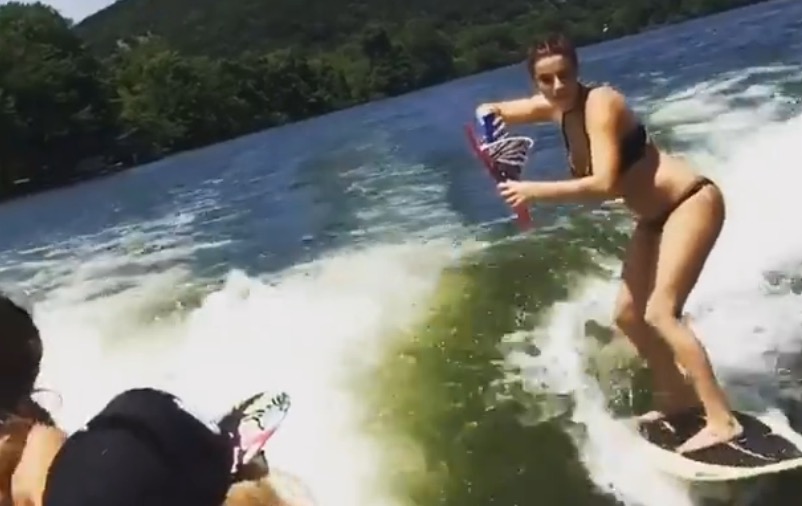 Une femme obèse boit une bière en faisant du wakeboard, la fin va vous surprendre