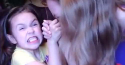 Une petite fille donne tout ce qu'elle a dans un bras de fer