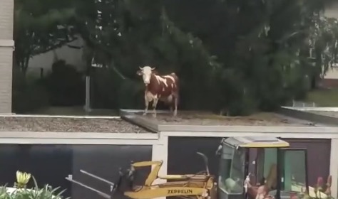 En Allemagne au petit matin, les habitants d'un quartier ont appelé la police après avoir eu la surprise de trouver une vaches sur le toit d'un garage. Saïd Saïd tema la vache ! Quoi la vache ? C’est toi la vache !