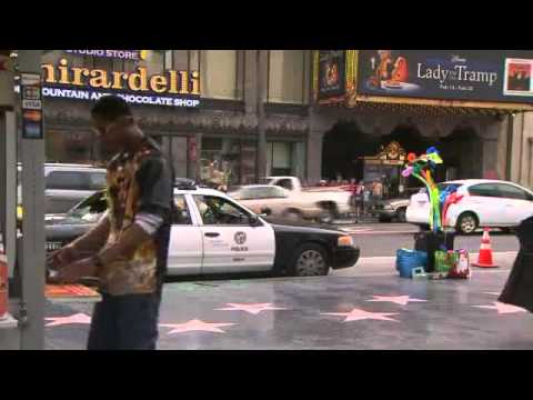 Une voiture de police se fait vandaliser sur Hollywood Boulevard.