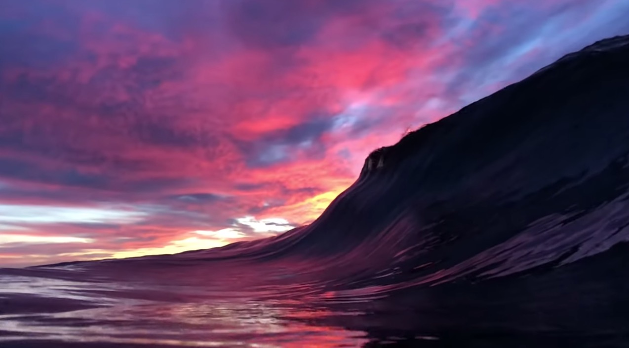 Une vague filmée au ralenti pendant un coucher de soleil... Ca se passe à New South Wales en Australie.